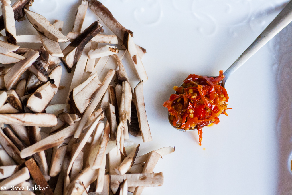 12) 1 tbl sp any Asian chilly sauce you have (I used a garlic red chilly chutney!)